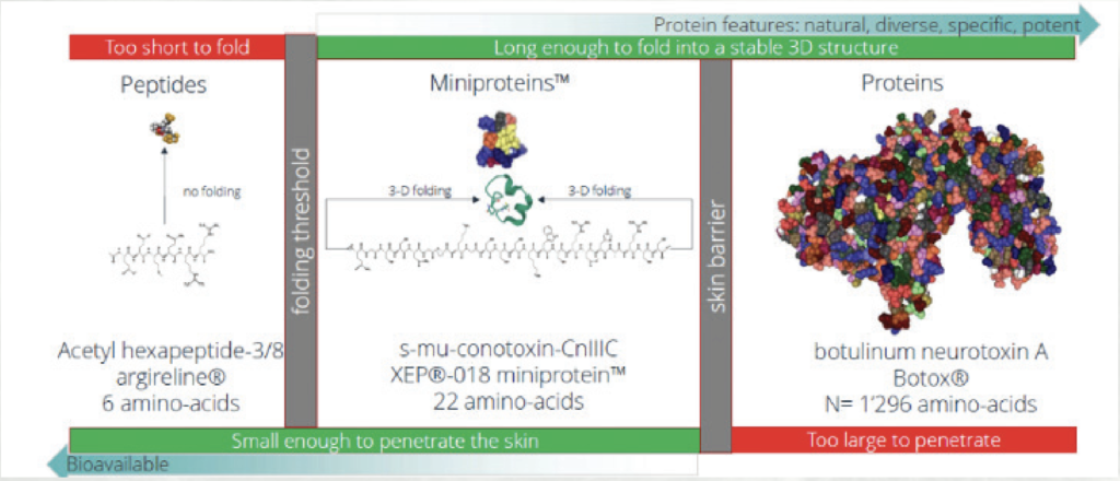 Activen XEP 018 Miniprotein: Biyoenformatik yöntem ile ‘’Botox in Jar’’ konsepti ile geliştirilmiş. Bir kas rahatlatma mekanizmasına dayanan ve 3D bir molekül yapısına sahip bu protein Botox ve lineer yapıdaki peptidlerin arasında bulunan ve 20 peptidi içerisinde bulunan bir polipeptid yapısıdır.