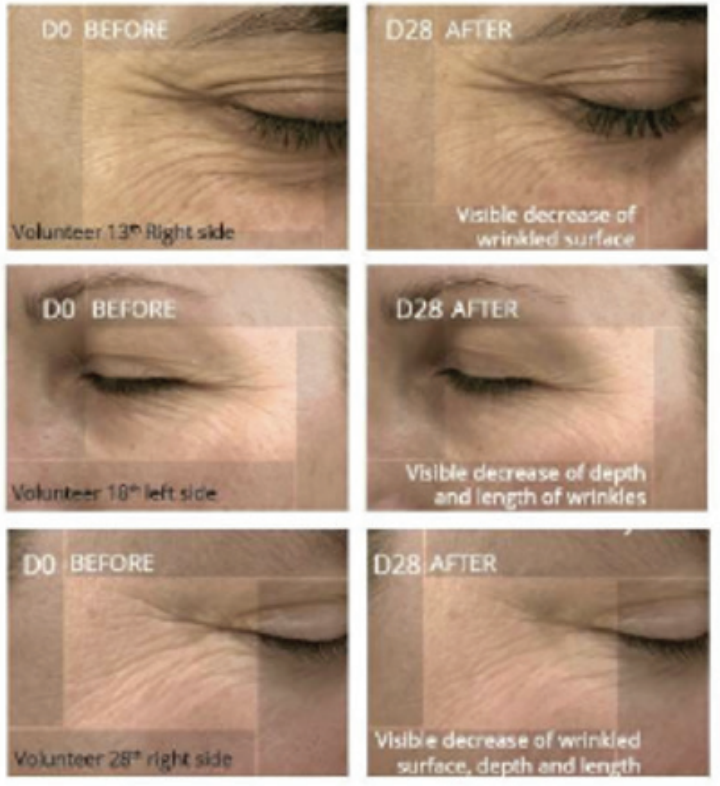 2 saat süre içerisinde etkisini göstermektedir ve etki 24 saat devam etmektedir. 28 günlük kullanımda ise kümülatif bir etki göstererek kırışıklıklarda oldukça anlamlı etki göstermektedir.